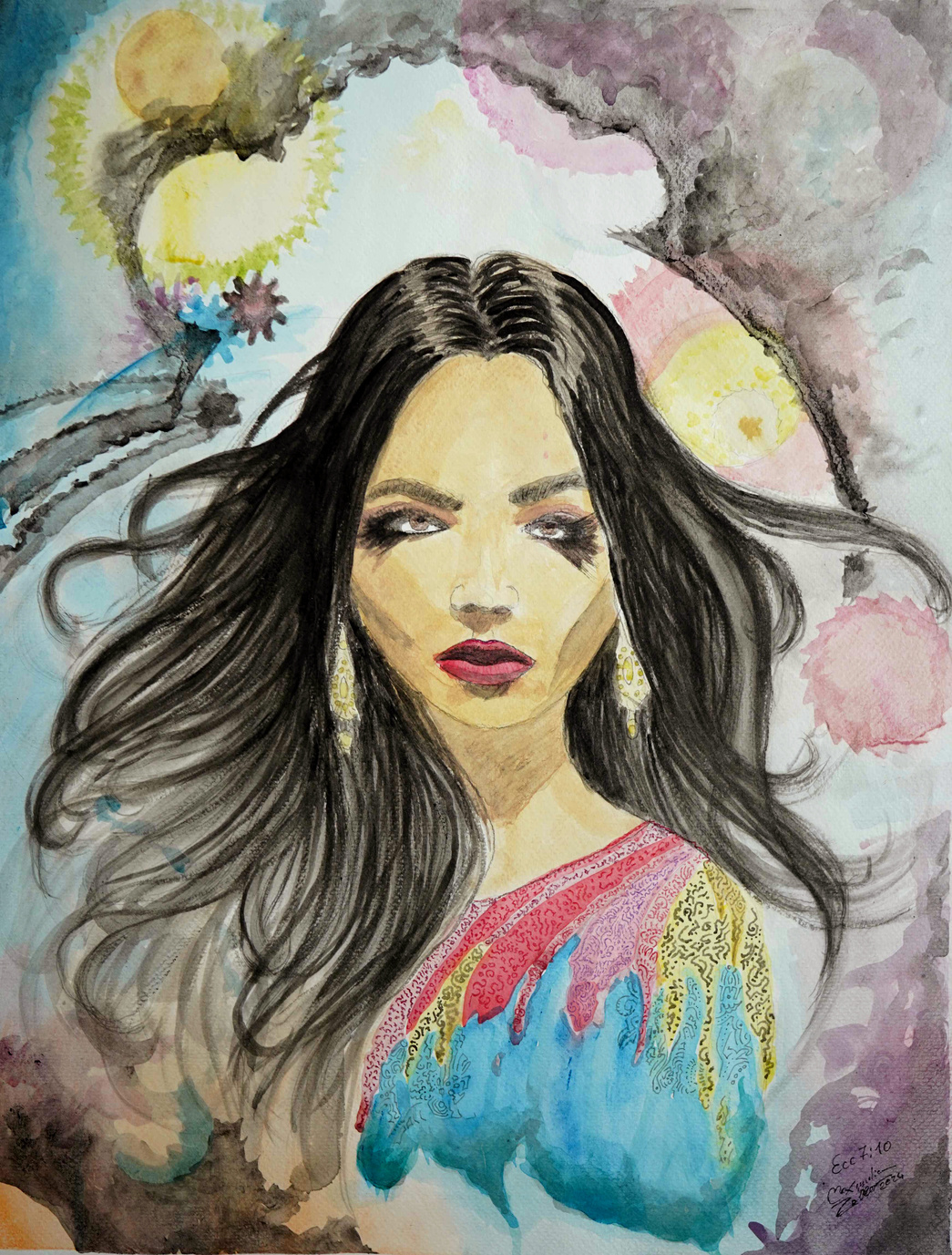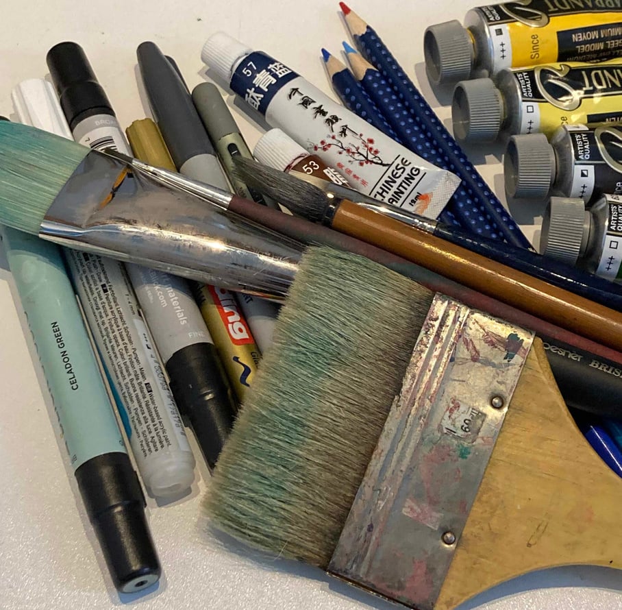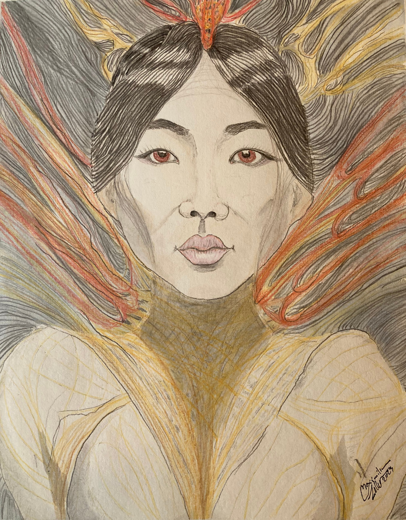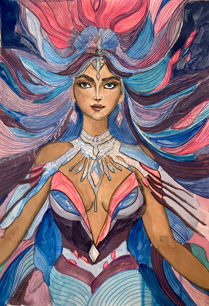 Using Oilcolor,Pastell, Graphite, Acryl, Aquarell, Gold, Silver, Stone, Charcoal, Sanguine, Photoshop Affinity, Ink, Color Pencils, Markers, and everything that can bring interesting colors and forms.